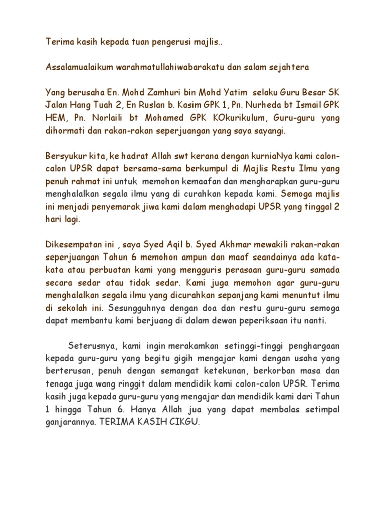 Ucapan Murid Majlis Restu Ilmu Pdf