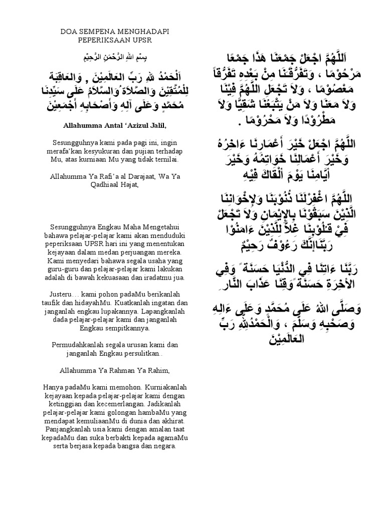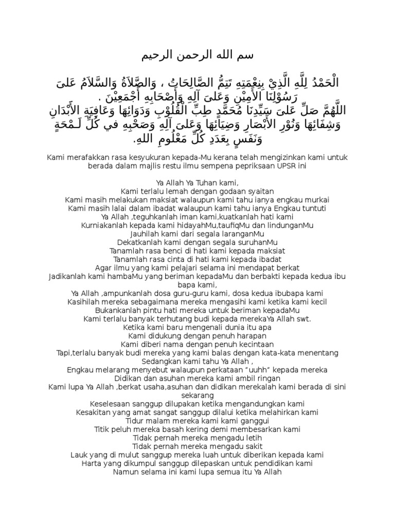 Teks Doa Penutupan Motivasi Upsr 2012 Pdf