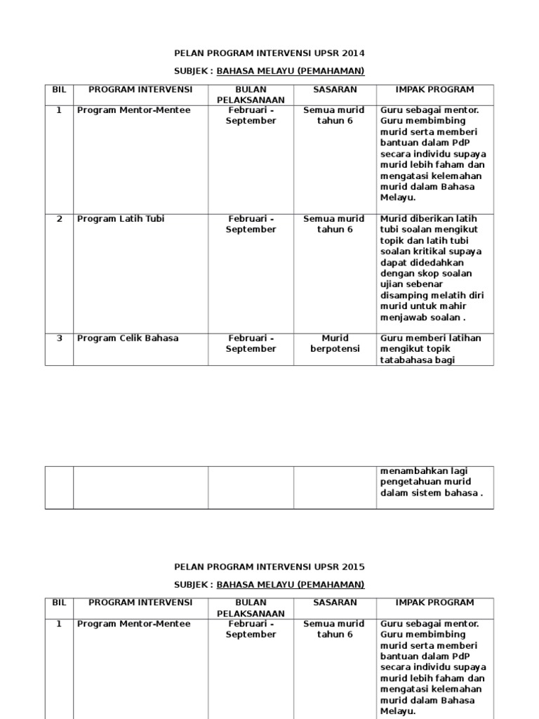 Pelan Program Intervensi Upsr 20142015 Bm1 Pdf
