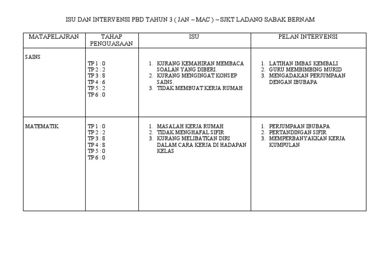 Isu Dan Intervensi Pbd Tahun 3 Pdf